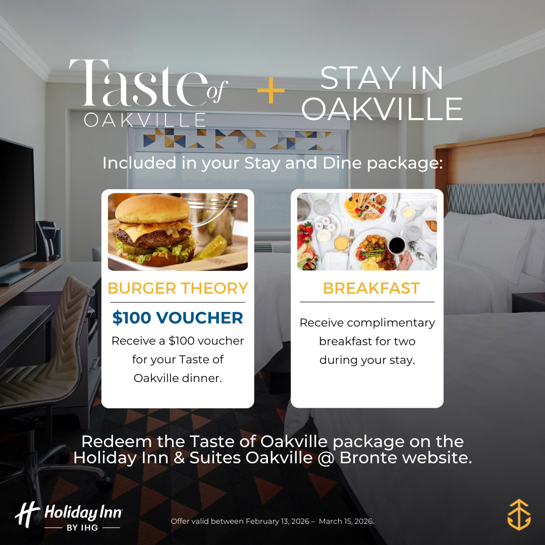 Stay at Quality Inn and Suites from January 5th– March 31st, 2026, and receive 10% off the best available rate. Redeem this offer at the time of your booking by calling the hotel at 905.829.8020 and mentioning Taste of Oakville.